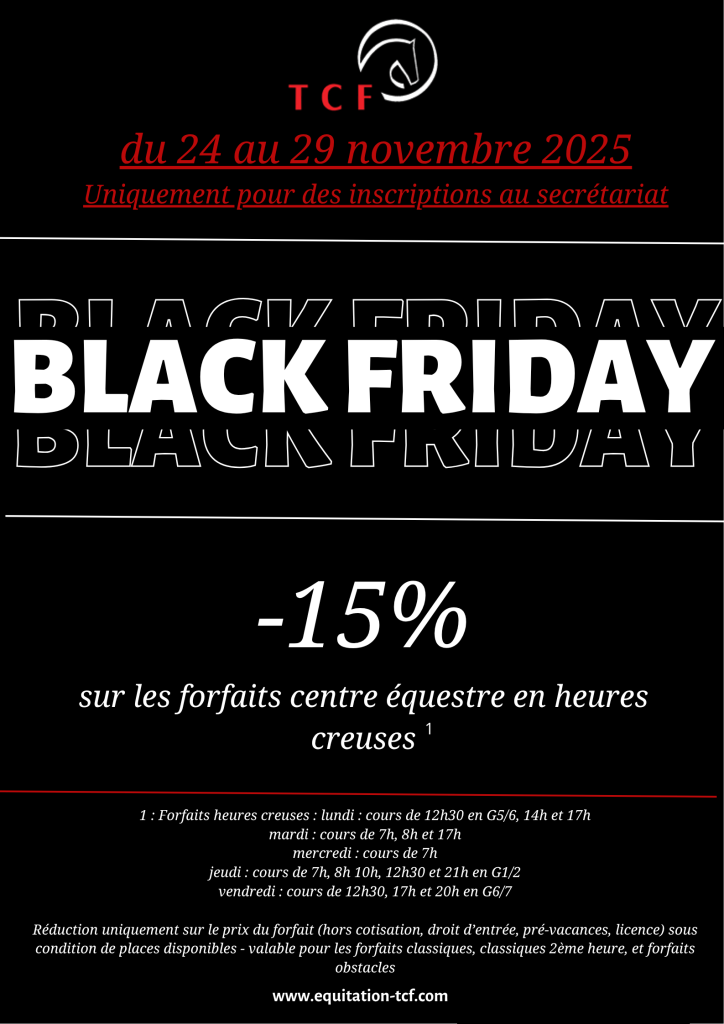 Durant toute une semaine, du 24 au 29 novembre 2025, bénéficiez d’une réduction de 15% sur le montant de votre forfait pour toute inscription sur un cours en heures creuses* !